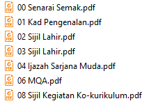 - Senarai dokumen mesti dinamakan seperti berikut: