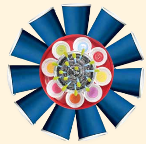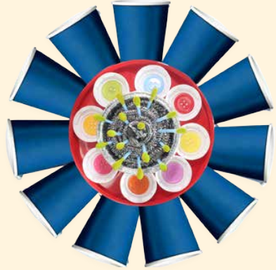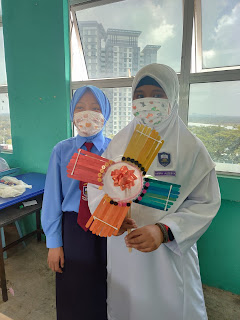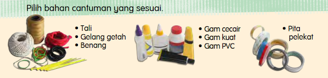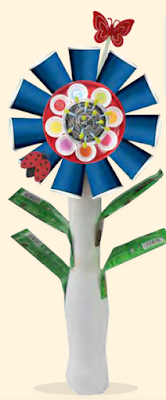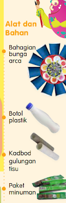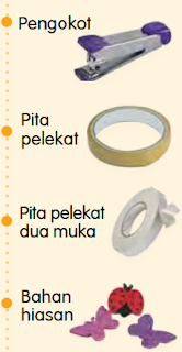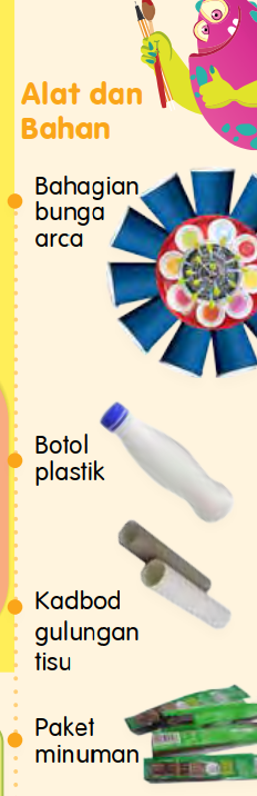 Alat dan bahan di atas digunakan bagi menghasilkan bentuk bunga. Penggunaan bahan ini mungkin berbeza bergantung kepada kreativiti guru dan murid. Sebagai contoh, penggunaan alat dan bahan di atas akan menghasilkan bentuk bunga seperti di bawah: