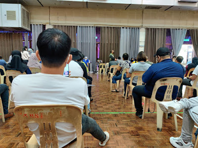 Setelah hampir 20 minit menunggu, akhirnya kami semua (yang temujanji jam 12.00 tengah hari) dipanggil masuk pada jam 12.15 minit (oklah, tak lama pun menunggu). Sebelum masuk, penerima perlu mempamerkan kad pengenalan dan juga butiran temujanji yang ada dalam MySejahtera kepada petugas di hadapan pintu masuk dewan. Lengkap, tidak ada masalah maka saya pun bergerak masuk ke dalam Dewan Gemilang. Di dalam dewan, saya kena menghadapi beberapa kaunter dan disini penggunaan MySejahtera amatlah penting. Oleh itu disyorkan untuk sentiasa buka aplikasi Mysejahtera. Kaunter pertama adalah kaunter pendaftaran, disini petugas akan bertanyakan beberapa soalan berkenaan dengan kesihatan kita, dan juga untuk mengesahkan kehadiran bagi vaksinasi melalui MySejahtera. Selesai di kaunter pertama, saya bergerak ke kaunter kedua iaitu Kaunter Kebenaran. Di kaunter ini, para petugas akan bertanya lagi tentang kesihatan kita, ia bagi memastikan suntikan vaksin dapat dilakukan tanpa sebarang masalah. Sekiranya tidak ada masalah, maka kita akan dibenarkan untuk menerima vaksin.
