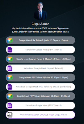 Selain itu, ibu bapa juga boleh create MyLink untuk anak-anak dan masukkan link bagi setiap subjek pembelajaran mereka. Dengan cara ini, PdPr anak-anak akan menjadi sistematik.