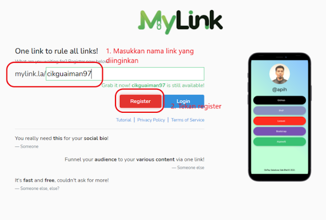 Sekarang saya akan tunjuk tutorial macam mana kita nak bina MyLink dari pendaftaran sehinggalah terbinanya MyLink anda sendiri. Jom ikut langkah-langkah di bawah: