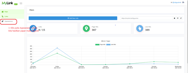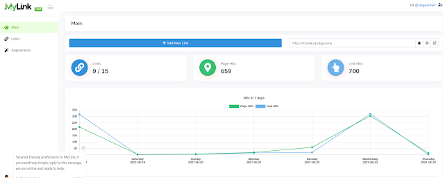 6. Sebaik sahaja anda siap sahaja masukkan link, maka siaplah MyLink anda. Tahniah! Untuk memantau perkembangan MyLink anda iaitu sebanyak mana MyLink anda dikunjungi, anda boleh tengok di bahagian Main.