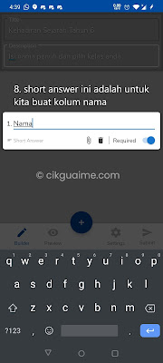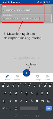 Cara untuk bina kuiz sama sahaja seperti kita bina kehadiran di atas. Cuma lepas tekan + pilih kuiz (Gambar 3 di atas). Template untuk kuiz juga telah disediakan, guru hanya perlu pilih sahaja. Panduan ada saya sertakan dalam bentuk GIF di bawah, harap dapat membantu.