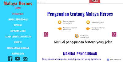 Penerapan didik hibur dan pengintegrasian teknologi ini selari dengan konsep 4C dalam pembelajaran abad ke-21. Di bawah ini adalah papar muka inovasi Digital Malaya Heroes.