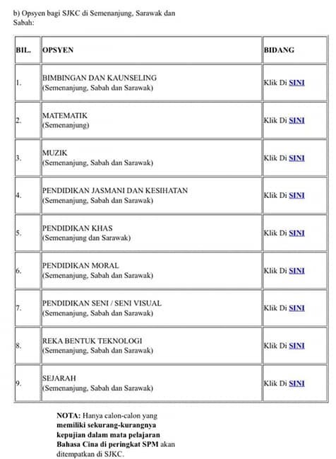 a) Opsyen bagi Sekolah Menengah, Sekolah Kebangsaan dan Sekolah Jenis Kebangsaan Cina (SJKC) di Semenanjung, Sarawak, dan Sabah:
