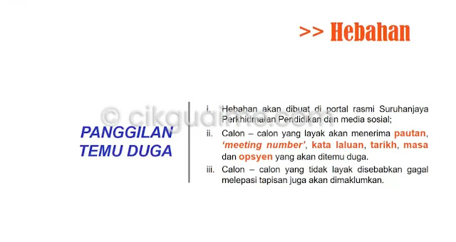 - Sentiasa menyemak hebahan panggilan temu duga supaya tidak terlepas dan bersedia. Apabila tarikh dikeluarkan, kita akan ada masa untuk bersedia supaya temu duga yang dilaksanakan berjalan dengan lancar dan teratur Macam mana nak semak? Rujuk kepada gambar di bawah