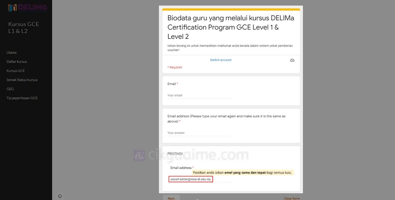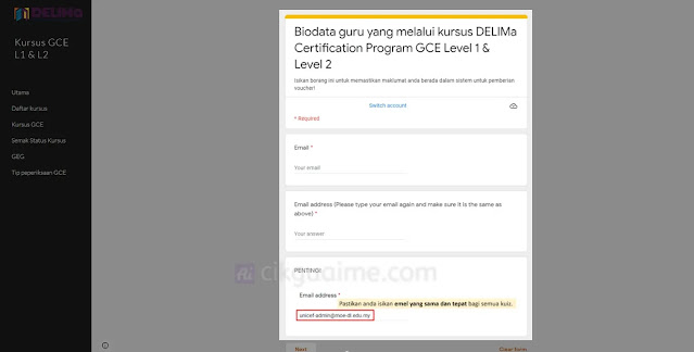 - Masukkan maklumat yang diminta, yang penting pastikan anda menggunakan akaun DELIMa yang betul !