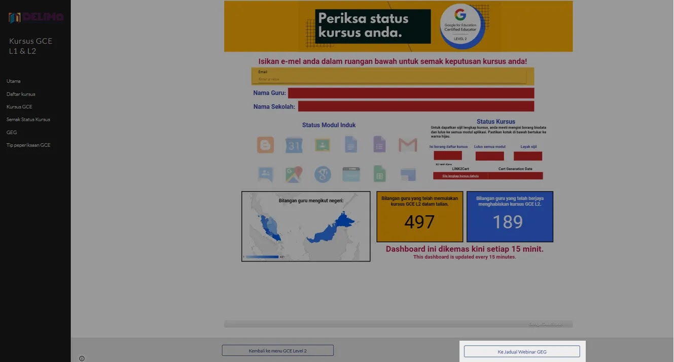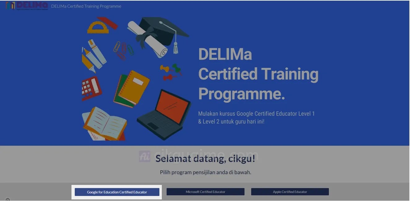- Setelah anda login ke dalam akaun DELIMa, langkah seterusnya adalah pendaftaran melalui pautan yang disediakan - DELIMa Certification Programme.